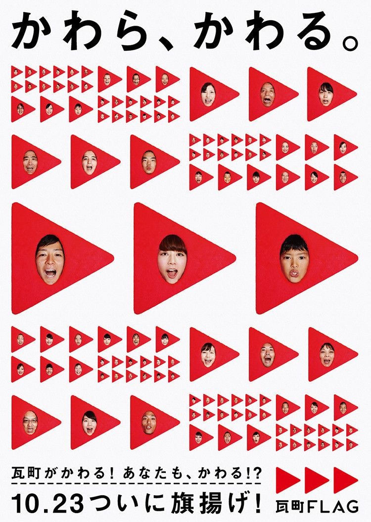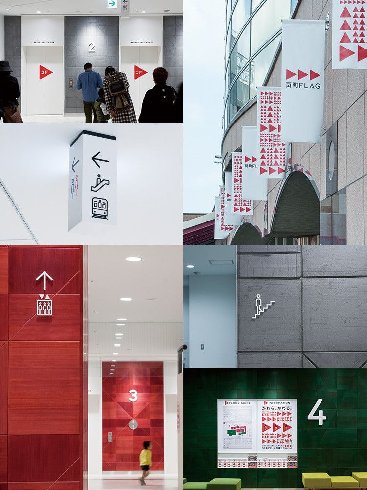 街の新たなシンボル=旗印となるべく、『瓦町FLAG』という名称を開発。さらに、「かわる、をはこぶ」をコンセプトとして、“変化”を記号化したVIをつくりました。