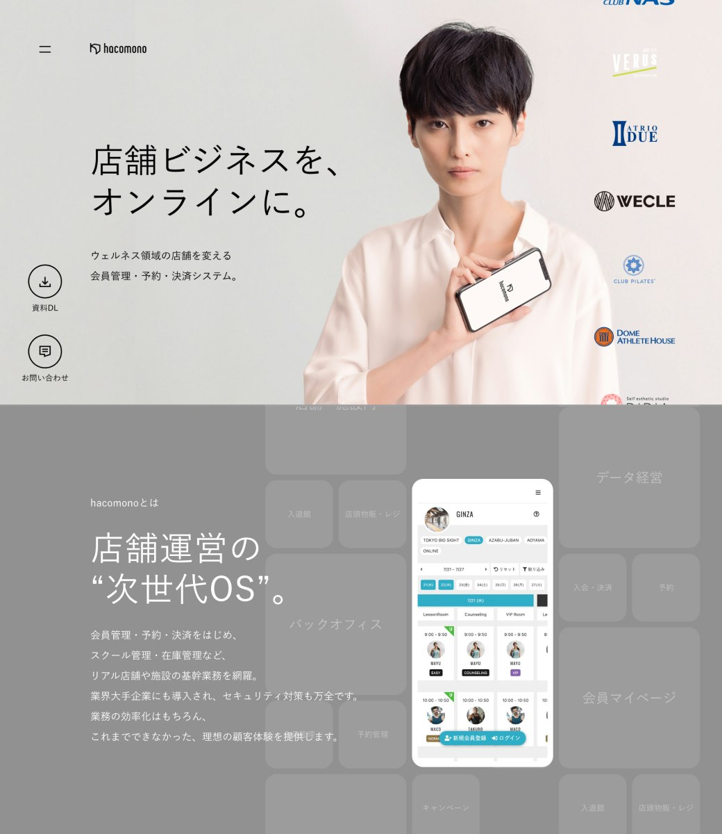 ウェルネス/運動施設向けオールインワン・マネジメントシステム「hacomono」を提供する株式会社hacomonoのブランディングを担当。2020年のサービススローガンの策定を皮切りに、ミッションビジョンバリューの策定、2周年の記念サイト、サービスサイトリニューアル、ZINEの企画・制作、駅広告の企画・制作など継続的にブランディング支援を行っています。 一貫して大切にしているのは、ミッションとして定めた「ウェルネス産業を、新次元へ。」という言葉にも込めているような、産業そのものを活性化させ、日本にウェルネス文化を広げるという志を宿すこと。サービスの機能の洗練さに加え、思想に対してもステークホルダーに期待・共感してもらい、志の輪を広げるような施策やクリエイティブを追求しています。
