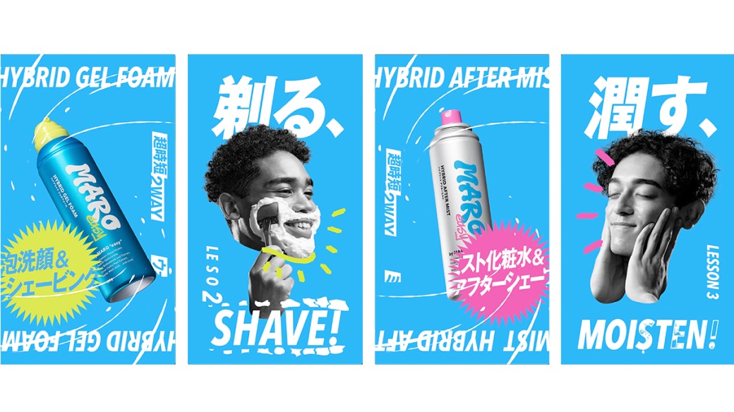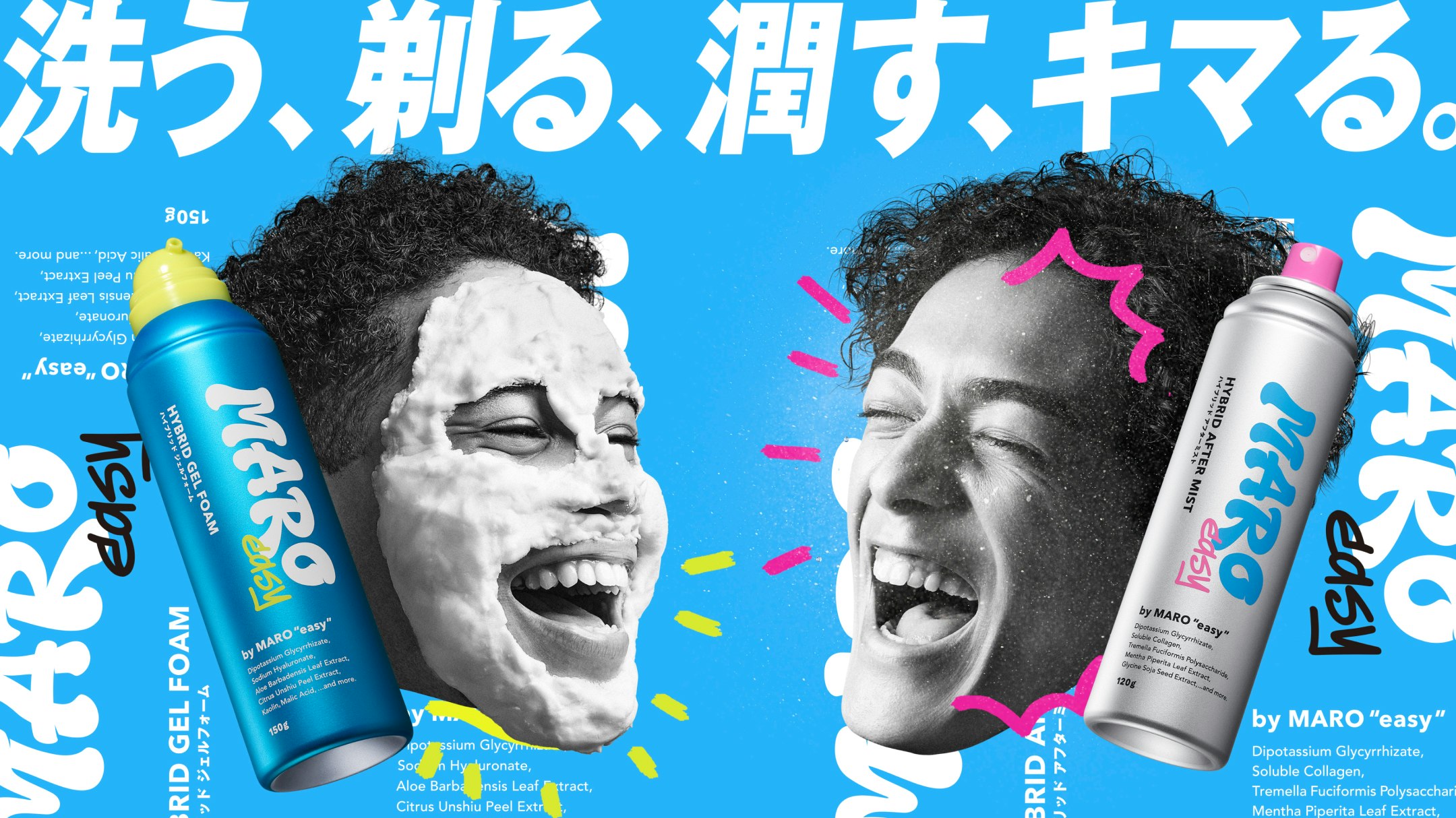 メンズケアブランドMAROのシェービングもできるスキンケアライン「MARO easy」の全体クリエティブを担当しました。 簡単・気軽にケアできる商品特性を、ストリートカルチャーを感じるスプレー缶に着想を得て、遊び心あふれるeasyな世界観で体現しました。また、たくましい男性像で描かれがちなシェービングのイメージから転換を図ることで、ケアがもっと楽しい体験であることの喚起を目指しました。