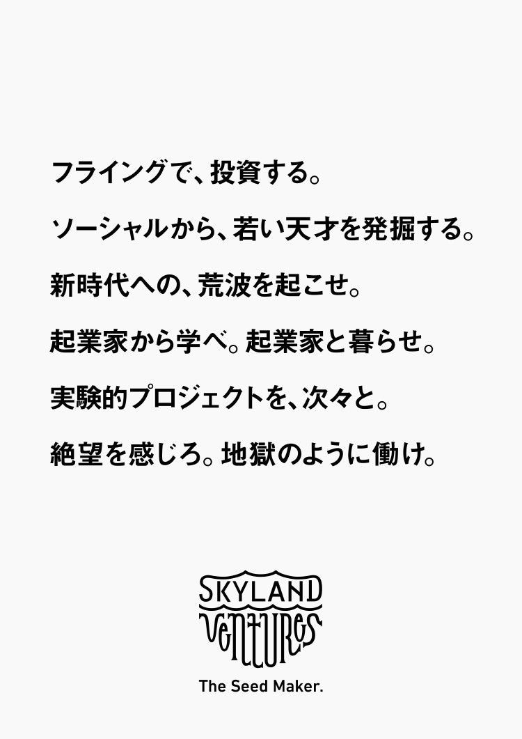 今後もPARKでは、Skyland Venturesのクリエイティブパートナーとして、同社のブランディングに携わるのはもちろん、投資先企業へのクリエイティブ支援を行う独自のスキームをつくったりと、これまではあまりクリエイティブが入り込んでいなかったスタートアップ領域を盛り上げていきます。