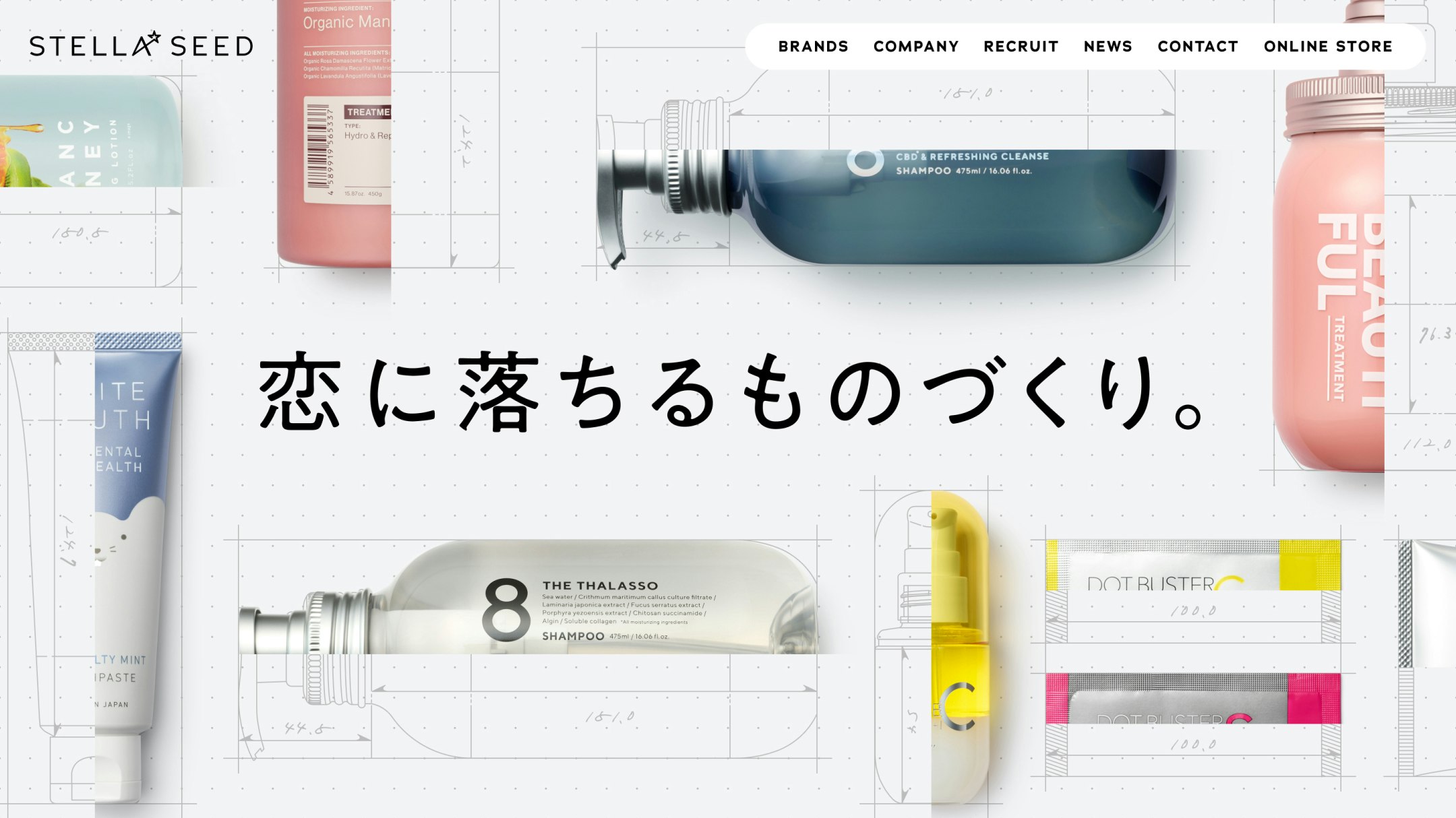 「8 THE THALASSO」や「AMINO MASON」など、ヘアケア・スキンケアを中心としたブランドを展開する化粧品メーカー、ステラシード株式会社のコーポレートスローガン、およびコーポレートサイトを担当しました。 ヒアリングやディスカッションを重ね、ミッションを「恋に落ちるものづくり。」と策定。化粧品を誰よりも愛する作り手として、アイデアも品質もデザインもとことん理想を追求する。そんな企業姿勢を言語化しました。 また、コーポレートサイトは、“ものづくり”の設計図をモチーフに、ブランドの裏側に人や手触りを感じさせる表現を目指しました。