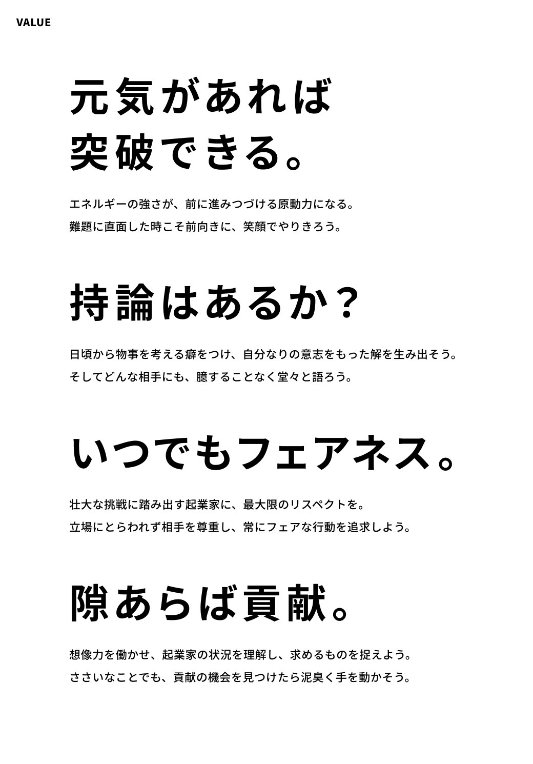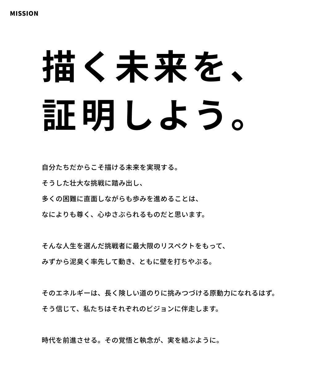 挑戦者と共に歩む姿勢を宣言するミッションバリュー。