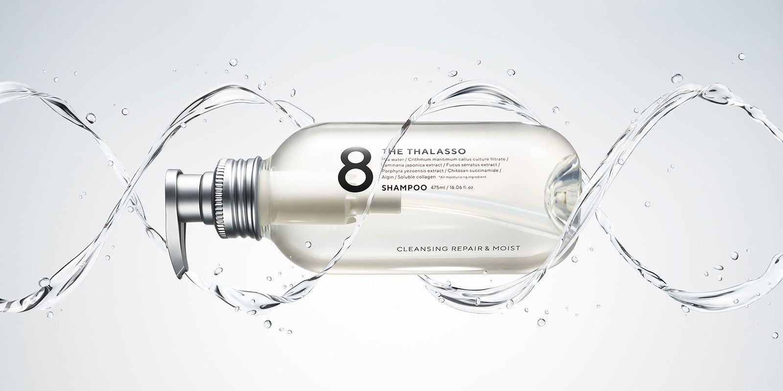 最先端のスキンケア発想から生まれた新ヘアケアブランド「8 THE THALASSO」の商品コンセプト、ネーミング、全体アートディレクションを担当しました。実際の使用感やスキンケアの文脈から着想を得て、容器の形状ひとつからビジュアル、WEBサイトに至るまで、みずみずしさが包み込むしつらえにこだわりました。