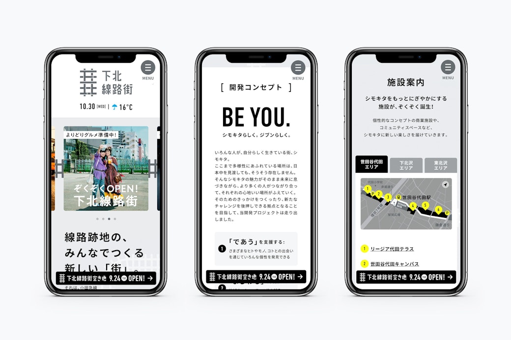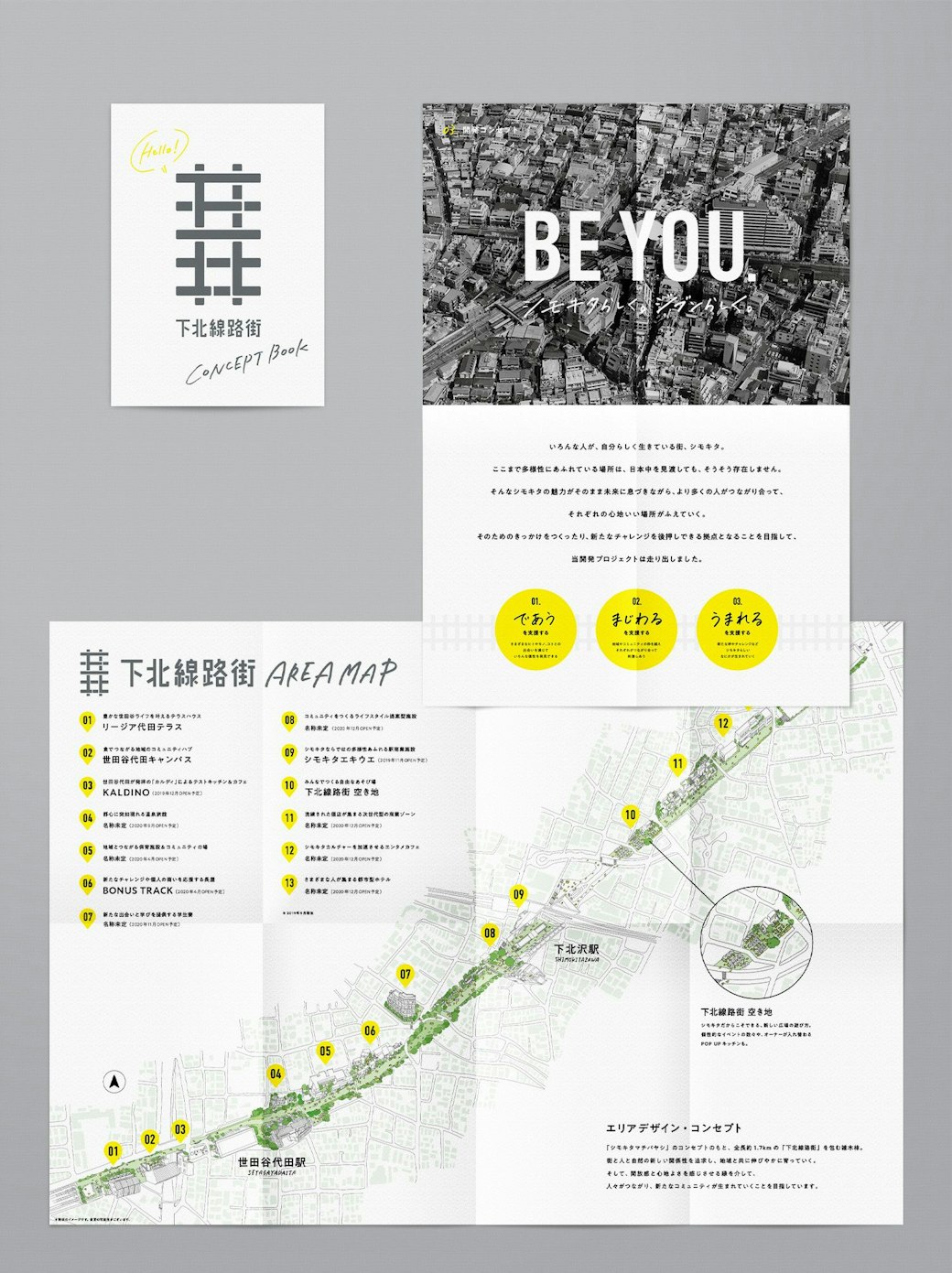 日本中を見渡しても、これ以上ないほどに多様性に富んでいるシモキタ。その個性を最大限に残しながら、地域全体がさらに素敵になるためにはどんな開発を行っていくべきか?そんな問いを重ねて、「サーバント・デベロップメント=支援型開発」をテーマに、「BE YOU. シモキタらしく。ジブンらしく。」というコンセプトを制作。シモキタの多様なプレイヤーや来街者が「であう」こと、「まじわる」こと、そこからなにかが「うまれる」ことを支援する存在として、当該エリアを定義しました。